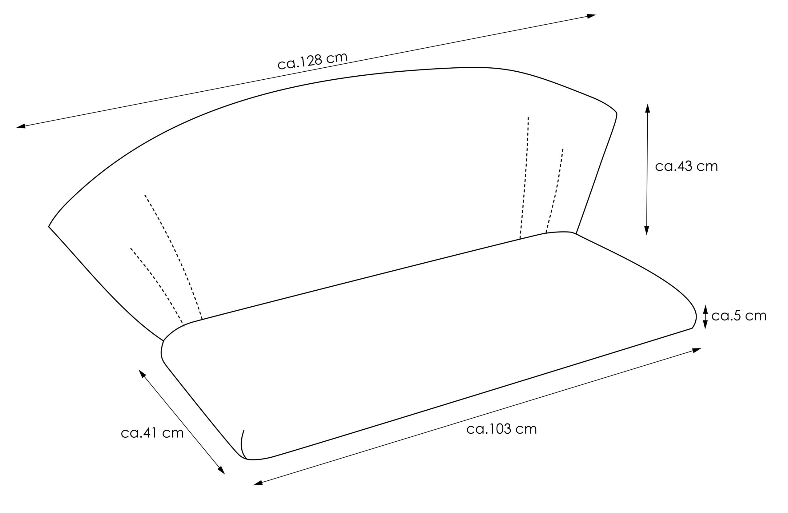 Maße: ca. 128 (103) cm breit, Sitztiefe 41 cm, 5 cm dick