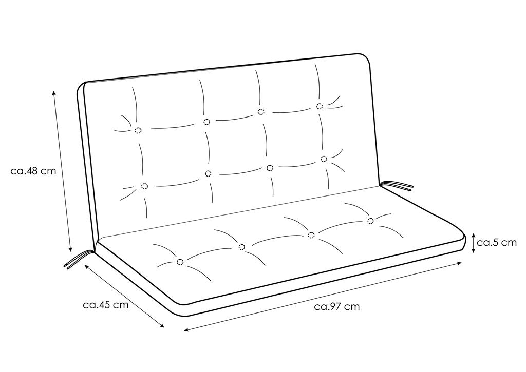 Maße: ca. 97 cm breit, Rücken 48 cm hoch, Sitztiefe 45 cm, 5 cm dick