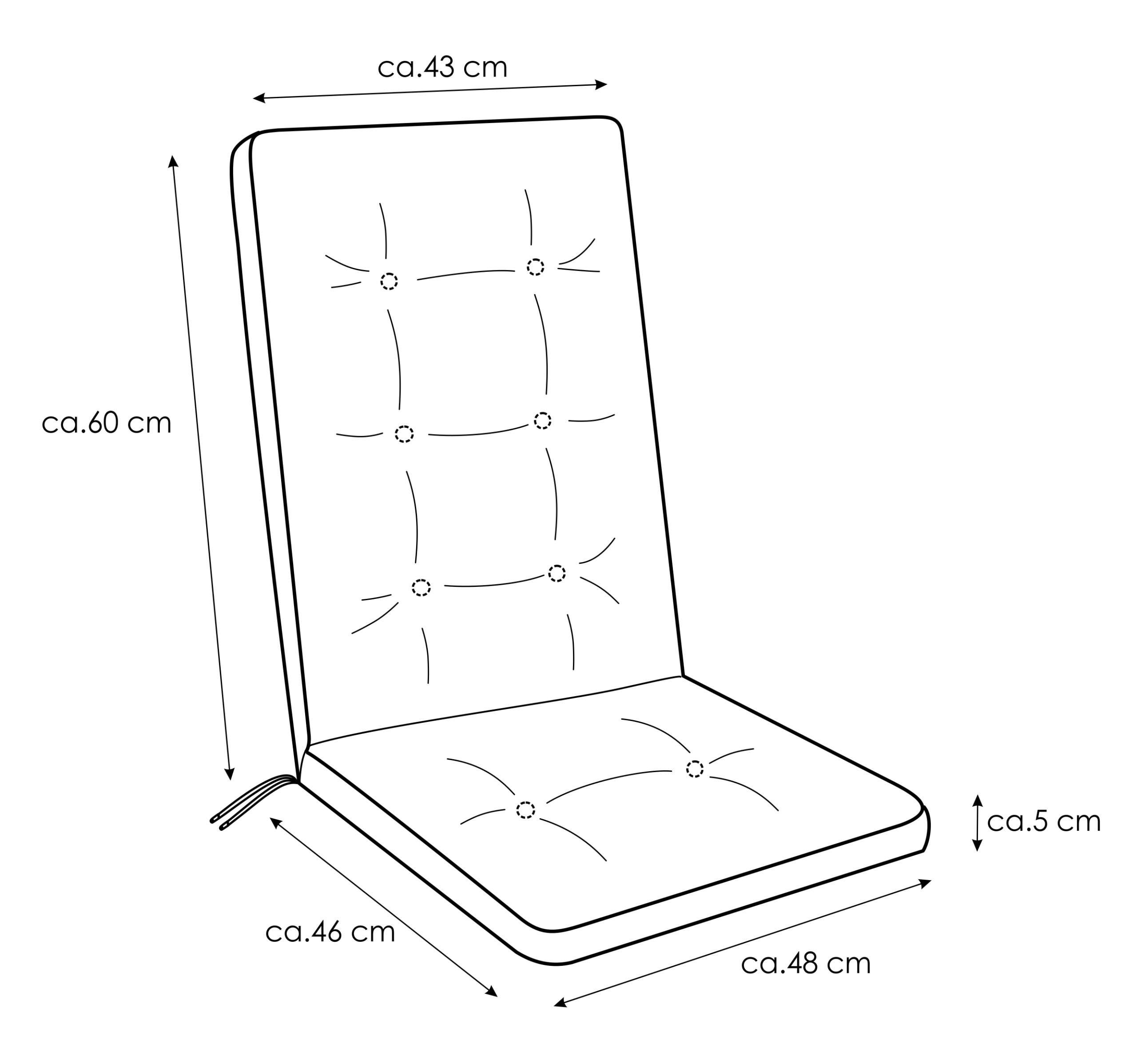 Maße: ca. 106 cm lang (Sitz: 46 cm, Rücken: 60 cm), Sitz: 48 cm breit, Rücken: 43 cm breit, 5 cm dick