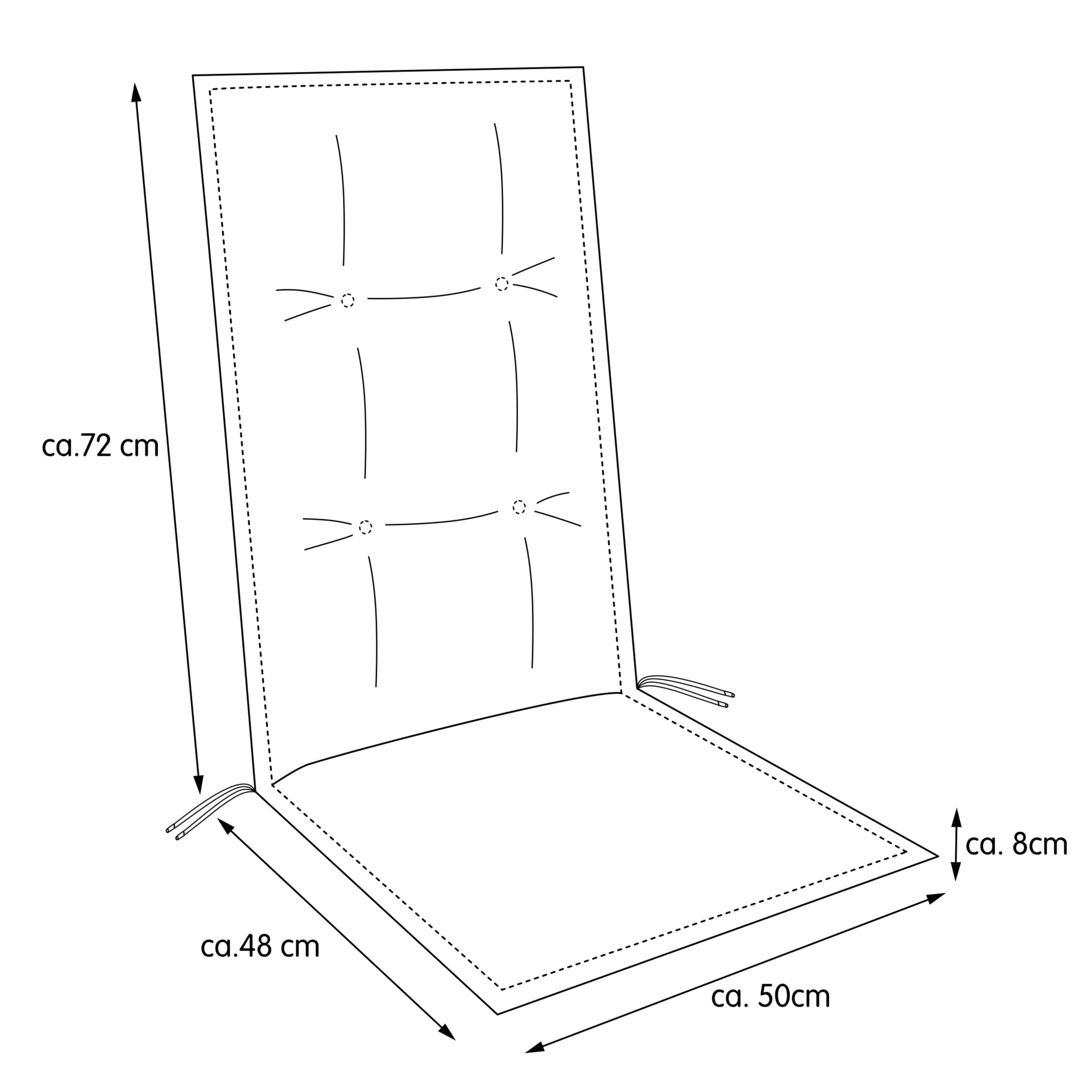 Maße (inkl. Stehsaum): ca. 120 cm lang (Sitz: 48 cm, Rücken: 72 cm), 50 cm breit, 8 cm dick