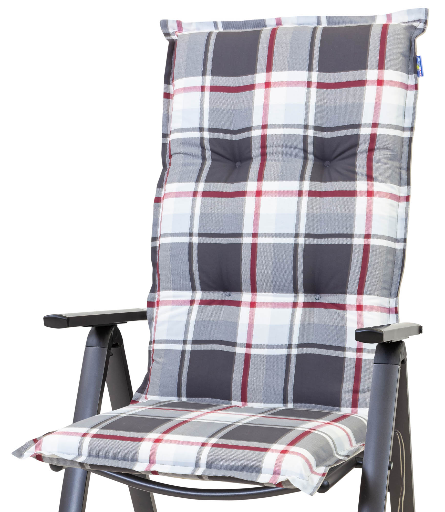 Auflage Hochlehner Prato 10443-701 grau-rot kariert 121x52x8 cm Sun Garden