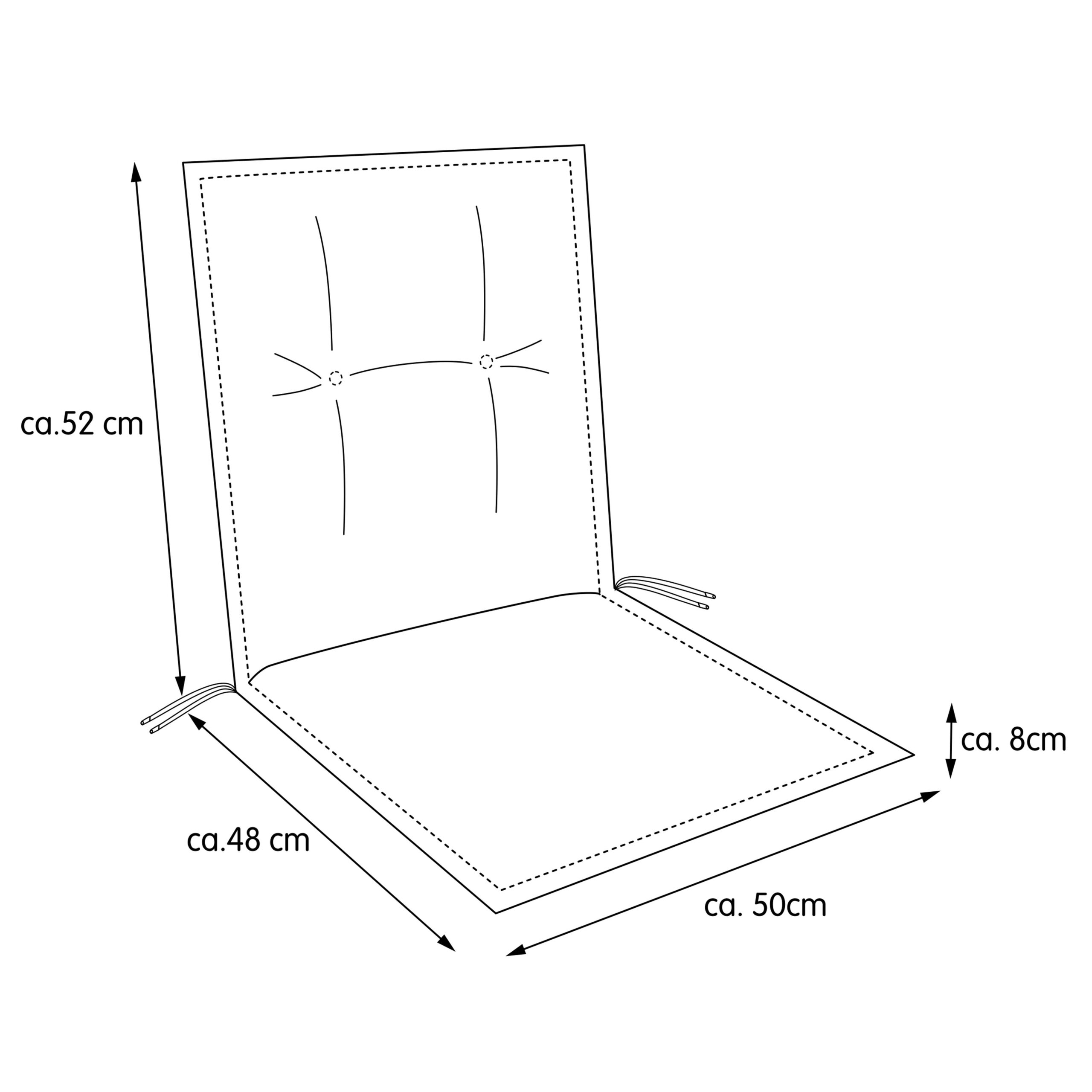 Maße (inkl. Stehsaum): ca. 100 cm lang (Sitz: 48 cm, Rücken: 52 cm), 50 cm breit, 8 cm dick